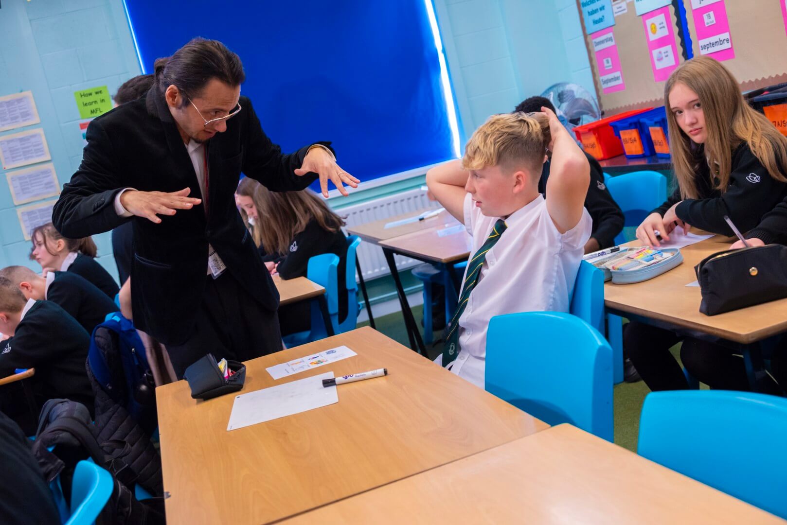 Alongside the bake-off, students also had the chance to immerse themselves in new languages through special workshops led by visitors from the University of Sheffield. They tried out German, Russian, Portuguese, and Chinese in fun and interactive sessions, playing games and even singing songs to help embed their new vocabulary.