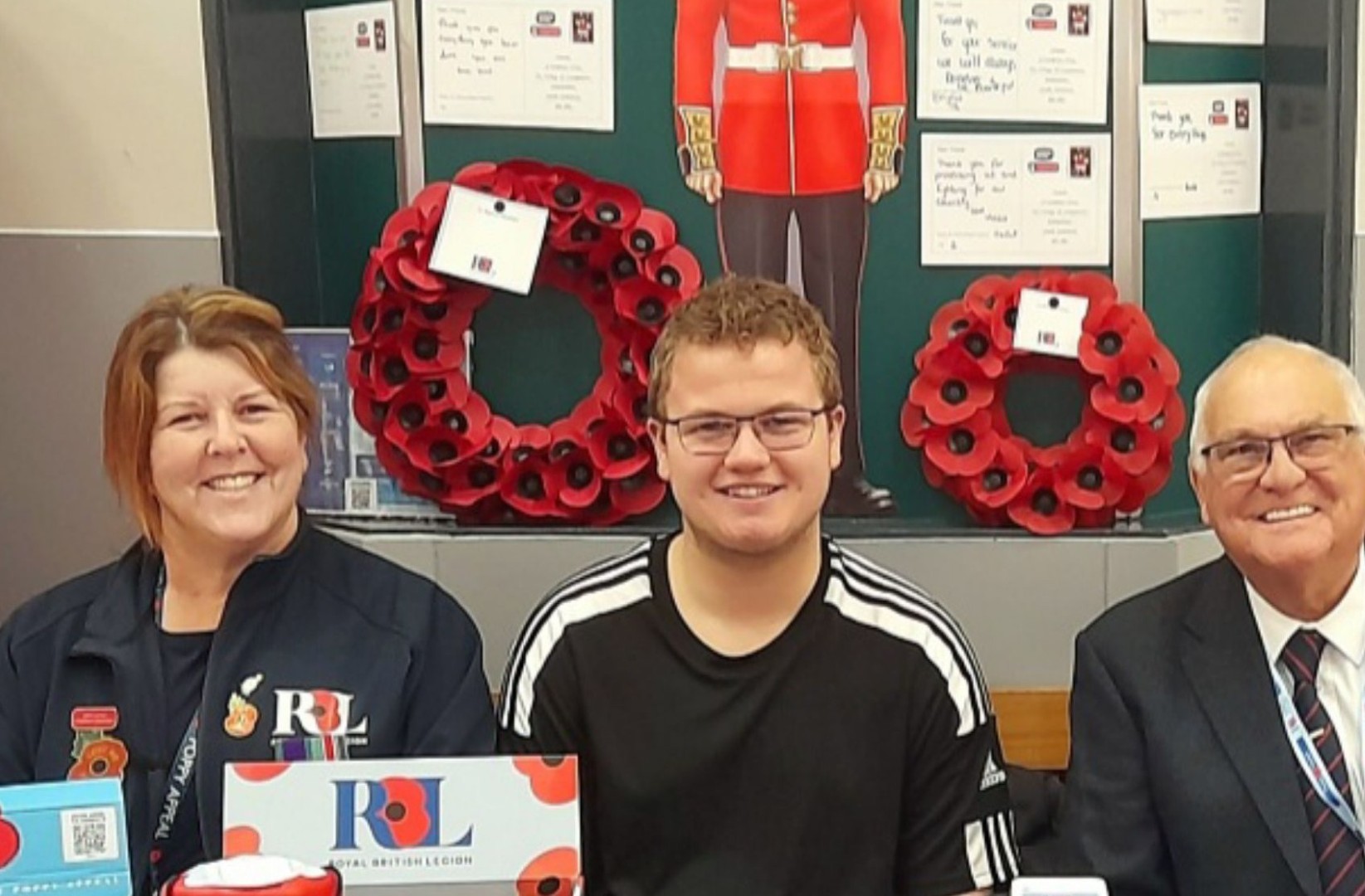 This half term, Jacob in Y11 has shown his dedication to supporting others by volunteering to raise money for The Royal British Legion, selling poppies and merchandise at the Morrisons Parkgate stall.