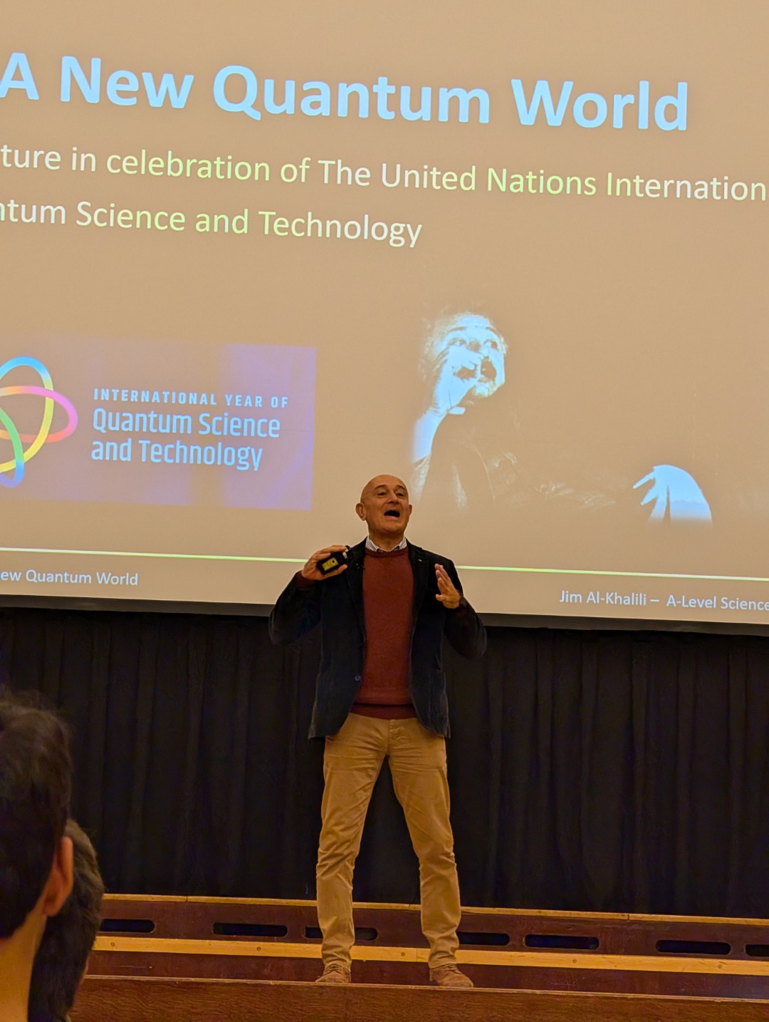 - Prof Jim Al-Khalili (University of Surrey), who shared insights into quantum physics and the early physicists who developed ideas such as quantum entanglement. He explained how the next quantum revolution could transform our lives even more than artificial intelligence is currently doing.