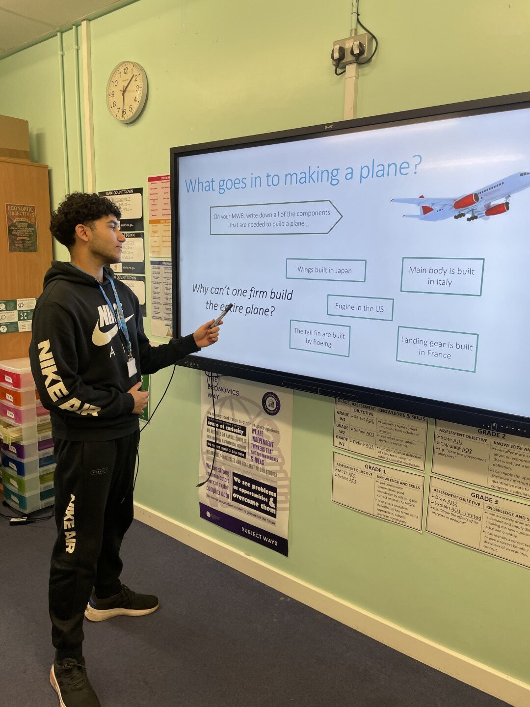 Students worked collaboratively, assigning different roles along the production line and analysing how efficiency improved as they concentrated on particular tasks. It was a fun and engaging way to understand an important economic principle, helping to link theory with practical experience.