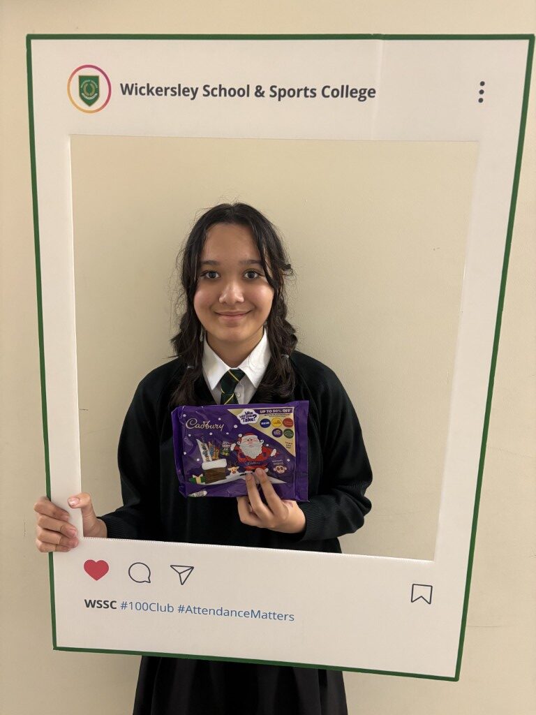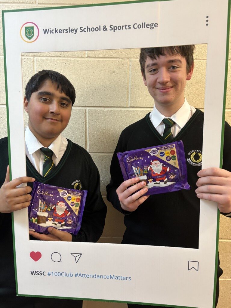 WSSC held its very own 100 Club event for the second half term of this academic year. This was to celebrate students who had 100% attendance for that half term (4th November – 19th December). 675 students attended every day during HT2, and were therefore eligible to collect a chocolate treat.💯