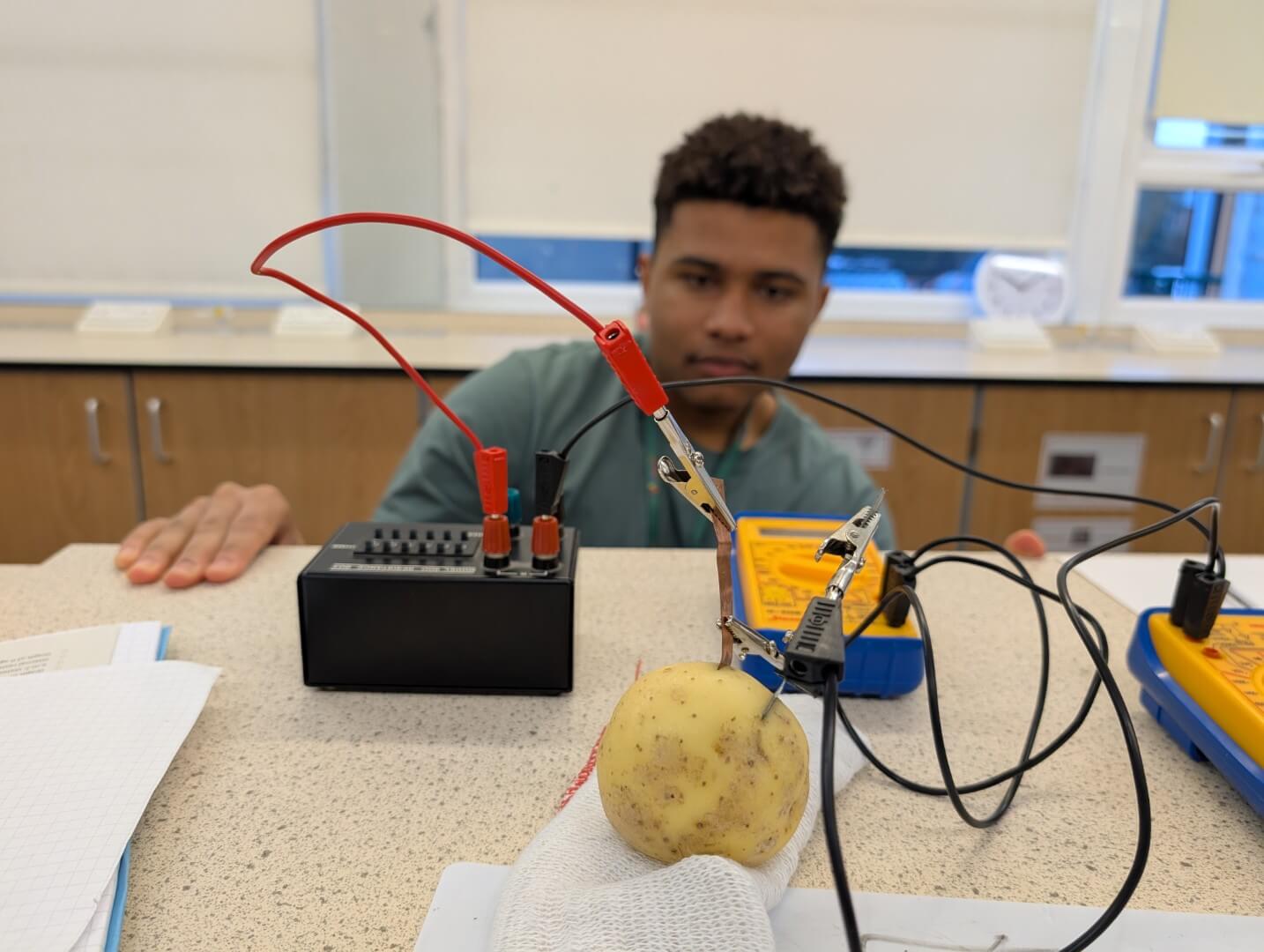 They built electrical circuits and applied what they have learned this year about using multimeters, variable resistors and circuit design. Using the data they collected, students will now determine the electromotive force, internal resistance and maximum power output of their potato batteries. Great work everyone, well done!